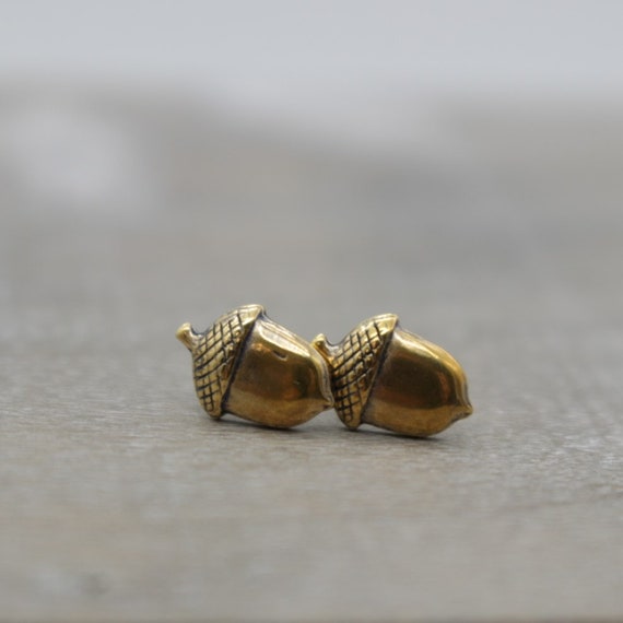 Acorn Brass Stud Earrings - Brass Acorn with Sterling Silver Post: Handmade. Buy Acorn Brass Stud Earrings - Brass Acorn with Sterling Silver Post: Stud - ✓ FREE DELIVERY possible on eligible purchases. Each earring is made from a tiny brass acorn measuring approximately 8mm tall. They are made from solid brass with a hollow back to make the earrings lightweight and comfortable to wear. The color of the brass closely resembles gold. Sterling silver posts have been soldered to the back of each acorn and sterling silver earring backs are also included. 。These earrings are extremely comfortable to wear and rarely catch on any hair or clothing. The earrings are completely nickel-free, making them safe to wear for those with nickel allergies. Your pair of earrings will arrive on our signature card to keep them safe. Care instructions are also included to help you keep them in perfect condition for years to come. 。Brass, like sterling silver, will naturally tarnish (darken). The extent and speed of this darkening depend on many factors, including climate, chemicals the metal is exposed to, and the natural chemistry of the wearer’s body. The beauty of darkened brass is that it can be left dark for a beautiful vintage look or polished back to its original shine with a brass cleaner. To minimize excess tarnishing and decrease the speed at which tarnishing occurs, we recommend taking your jewelry off before showering, swimming, sweating, and sleeping. 。Please feel free to contact me if you have any questions! 。 。 。
